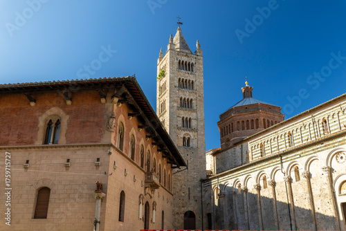 © Richard Semik, Obraz premium Massa Marittima Duomo bell tower and historic buildings