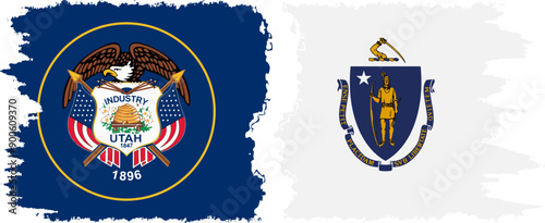 Fototapeta premium Massachusetts and Utah states grunge brush flags connection, vector