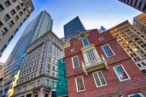 © eskystudio, Fototapeta premium Massachusetts Old State House building in Boston downtown