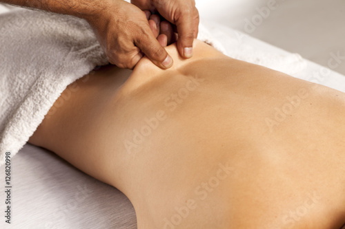 Fototapeta premium massage the spine, pulling lumbar vertebrae