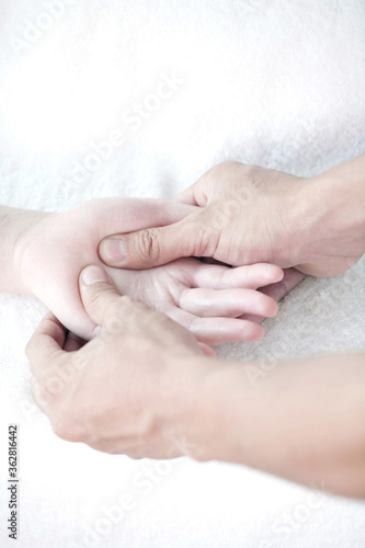 © ImageHit, Fototapeta premium Massage therapist massaging woman's palm