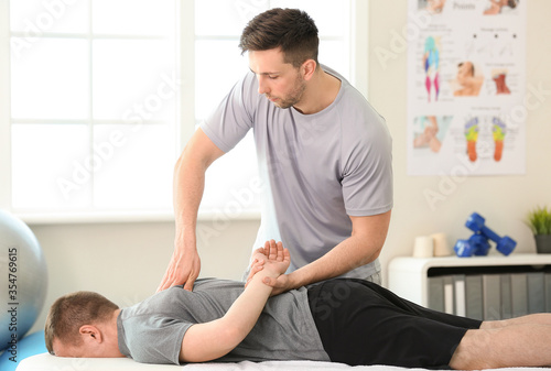 Fototapeta premium Massage therapist working with patient in medical center