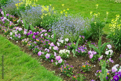 © Patryssia, Naklejka premium massif floral printanier,pensées,myosotis