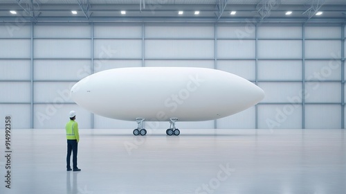 © K-MookPan, Fototapeta premium Massive airship construction hangar for eco-friendly transport.