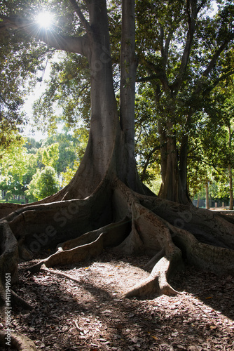 © Chloe, Obraz premium Massive fig tree roots spreading across forest floor