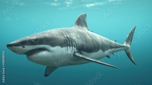 © intothestar, Obraz premium Massive great white shark, isolated on transparent background, apex predator, jaws