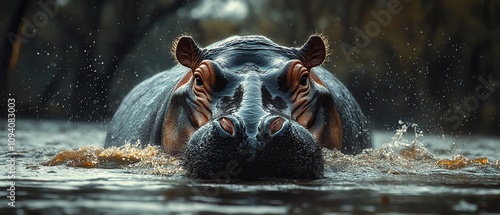 Fototapeta premium Massive hippopotamus emerging from river