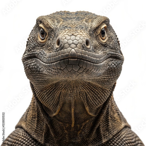 Obraz premium Massive Komodo Dragon With Intricate Scales Isolated Against Plain Background...