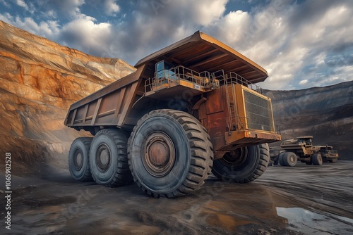 © Andrii, Obraz premium Massive Mining Truck in Open-Pit Mine. Generative ai