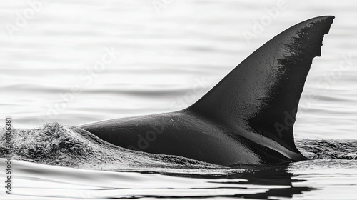 © Diana, Fototapeta premium Massive Shark Fin Rises From Water in Striking Black and White Contrast