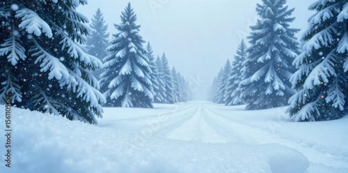 © Pornsuda, Naklejka premium Massive snowflakes fall in a blizzard, creating a breathtaking winter scene The heavy snow obscures the landscape, leaving only white drifts and swirling flakes visible , ice, cold