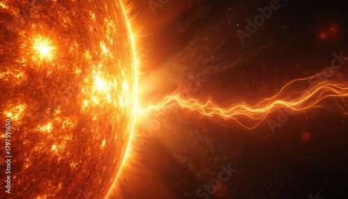 Fototapeta premium Massive solar storm erupts from suns surface with fiery plasma arcs and...