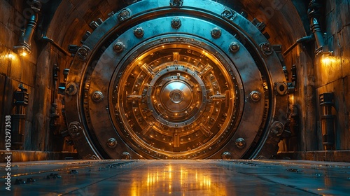 Obraz premium Massive vault door in dark futuristic tunnel
