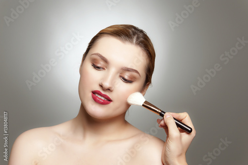 © below, Fototapeta premium Master is brushing female carefully.