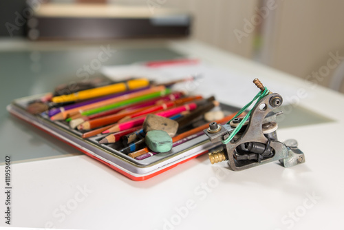 © Todor Rusinov, Fototapeta premium Master tattoo artist prepares the transfer tattoo sketch