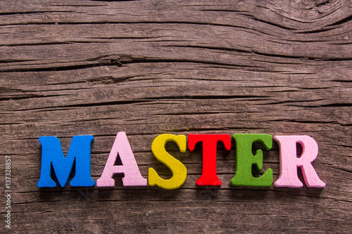 Fototapeta premium master word made from colored wooden letters on an old table. Concept