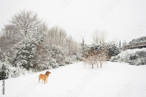 © Erlantz, Naklejka premium Mastine dog playing in the snow. Snow landscape