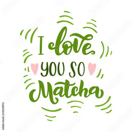 © Яна Фаркова, Obraz premium Matcha green tea quote isolated on white background. Matcha hand drawn lettering