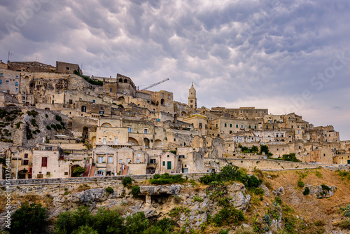 Fototapeta premium Matera is a city in Italy. The Sassi di Matera, is a complex of cave dwellings carved into the ancient river canyon, often cited as
