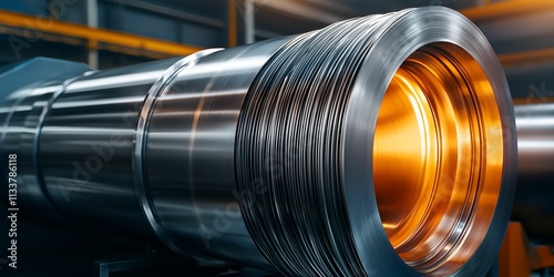 © ANGEL4289, Obraz premium Material science alloys concept. Metallic tube with intricate patterns, showcasing engineering and industrial design.