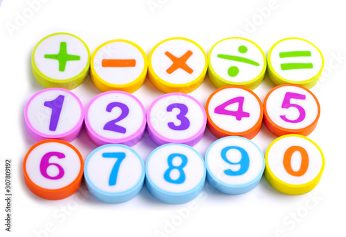 © amazing studio, Fototapeta premium Math Number colorful on white background : Education study mathematics learning teach concept.