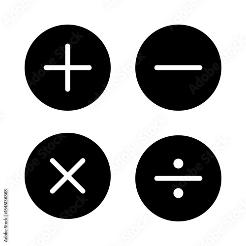 © Lerlert Graphic, Fototapeta premium Math Symbols Icon Set - Plus Minus Multiply Divide - Black Circle