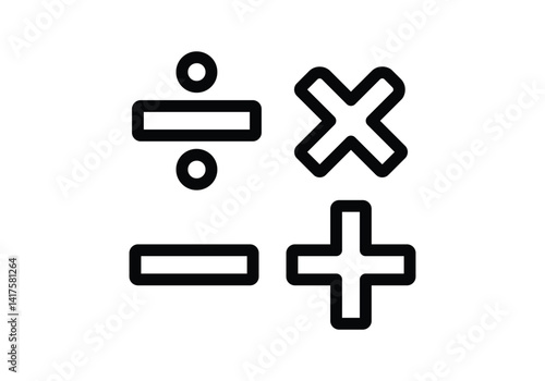 © Pure Solution, Obraz premium Math symbols set. Mathematical plus, minus, equal, multiply and divide signs on element for education, learning, calculation, accounting, financial operations concept. Isolated vector
