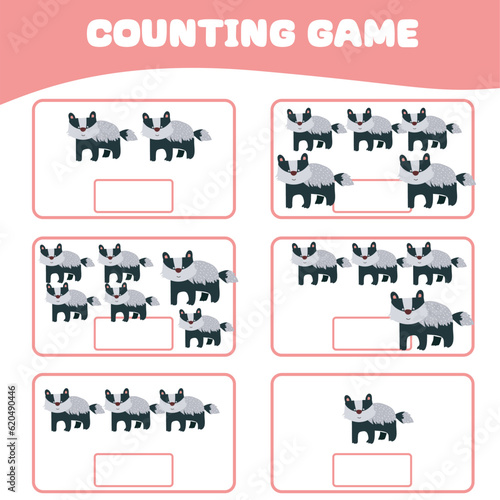 Obraz premium Mathematic counting worksheet. Count picture and write activity. Worksheet for kid. Educational printable worksheet. Vector illustration.