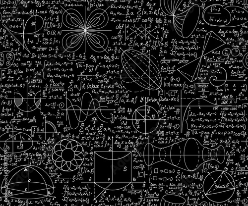 Fototapeta premium Mathematical vector seamless endless texture with handwritten figures,...