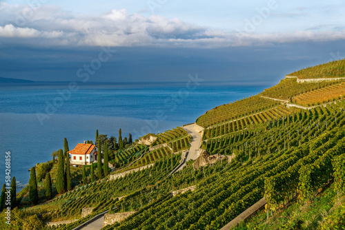 Naklejka premium Matin d'automne dans les vignobles du Lavaux en Suisse