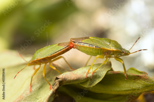 Fototapeta premium Mating Green shield bugs, Palomena prasina