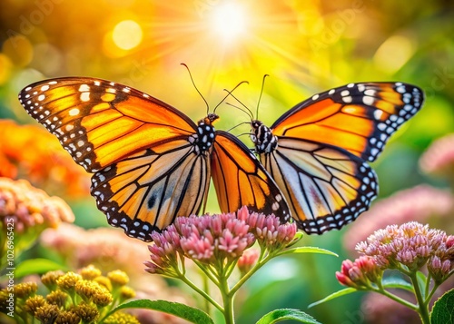 Fototapeta premium Mating Monarch Butterflies in Vibrant Natural Habitat