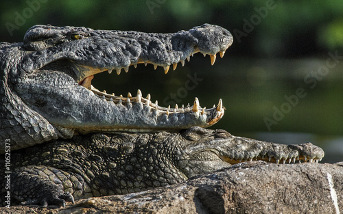 © Uryadnikov Sergey, Obraz premium Mating Nile crocodile (Crocodylus niloticus). Two crocodiles with opened mouth