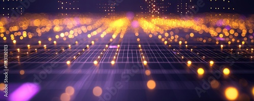 © Tin, Obraz premium Matrix abstract background idea. Abstract digital landscape with glowing lights and grid patterns representing innovation.