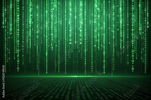 © CarlosAlberto, Obraz premium Matrix Code Background Green cascading code futuristic feel - generated by ai