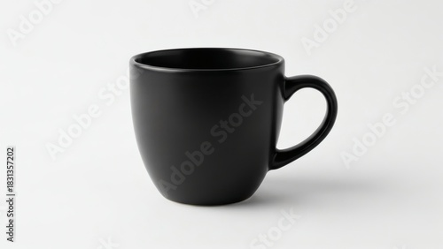 © Kavindu, Obraz premium Matte black ceramic coffee cup on white background.