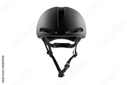 © cabs, Naklejka premium Matte black helmet, minimalist, frontal view, black background