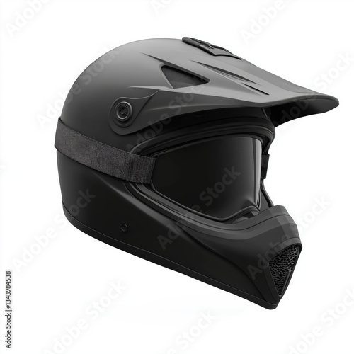 © sukarman, Fototapeta premium matte black motocross helmet, angled slightly, with a visor and chin guard