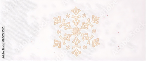 © Hanuman, Fototapeta premium Matte blush canvas with delicate embossed snowflake clusters forming a soft circular pattern, floating rose-gold foil flecks, romantic holiday elegance.