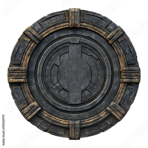 Obraz premium Matte circular shield emblem, sleek design, versatile for branding, digital use, transparent backdrop, modern aesthetic, professional appearance
