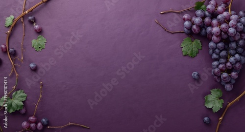 Fototapeta premium Matte grape themed background with natural vine elements and copy space