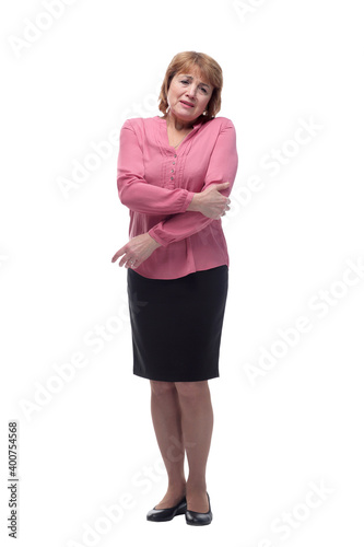 © ASDF, Fototapeta premium Mature beautiful woman with painful elbow over isolated background