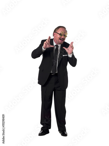 © Dan Kosmayer, Fototapeta premium mature businessman with dollar sunglasses gesturing.