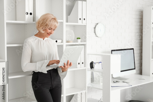© Pixel-Shot, Naklejka premium Mature businesswoman working with laptop in office