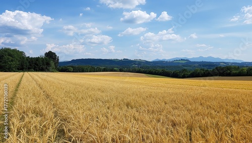 © VRVisionary, Fototapeta premium Mature cereal crops with rolling hills beyond