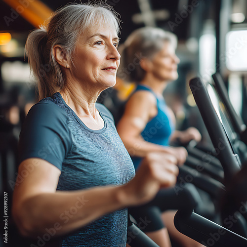 Obraz premium "Mature Couple Exercising on Treadmills: Active and Healthy Lifestyle"