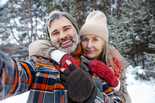 Fototapeta premium Mature couple looking happy and making selfie
