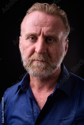 Obraz premium Mature handsome bearded man with blond hair against black background