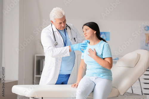 Fototapeta premium Mature male doctor working with patient in clinic