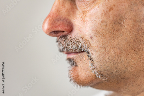 Fototapeta premium Mature male with beard and mustache lower face part in profile